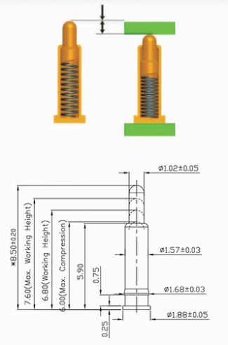 La hauteur de travail de base du Pogo Pin (connecteur à ressort):